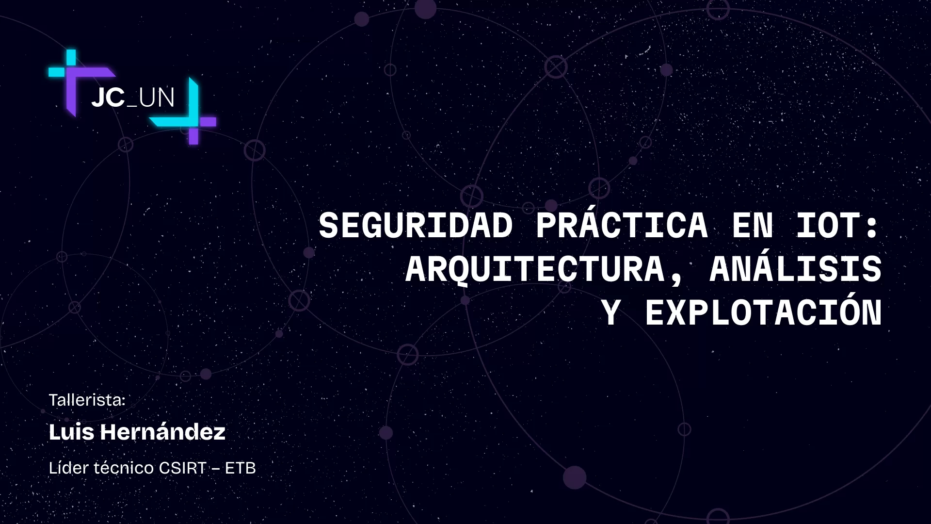 Partiendo de la arquitectura y componentes (hardware, software y redes), avanzaremos hacia técnicas concretas: analisis de hardware, interfases de depuración extracción y análisis estático de firmware, vulnerabilidades in the wild.